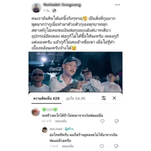 “คนเรามันคิดได้แค่นี้จริงๆหรอ เป็นสิ่งที่กูอยากพูดมากว่ากูเนี่ยทำมาด้วยตัวกุเองทุกบาททุกสตางค์กูไม่เคยขอเงินพ่อกูเลยแม้แต่บาทเดียว อุปกรณ์อัดเพลง พ่อกูก็ไม่ได้ซื้อให้นะครับ เพลงกูก็แต่งเองครับ แล้วกูก็ไม่เคยอ้างชื่อเขา เผื่อไม่รู้ทำเบื้องหลังนะครับจ้างได้”