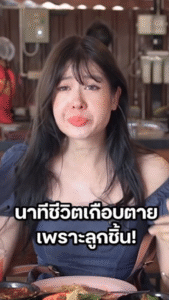 กลายเป็นคลิปที่ทำเอาคนดูทั้งตกใจทั้งลุ้นตามกันทั้งไทม์ไลน์ เมื่อคลิปสั้นจาก “ยิ่งรู้จักยิ่งVlogเธอ” ของนักแสดงสาว มิ้นท์ นวินดา เบอร์ต๊อดตี ถูกแชร์ออกมา ขณะเจ้าตัวกำลังกินขนมจีนน้ำยาแบบชิล ๆ แต่จู่ ๆ ลูกชิ้นกลับหลุดลงคอทั้งที่ยังไม่ได้เคี้ยว ในคลิปจะเห็นว่ามิ้นท์มีอาการสะดุ้งทันที ก่อนพยายามตั้งสติ ช่วยเหลือตัวเอง และส่งสัญญาณขอความช่วยเหลือจากคนรอบข้าง ช่วงนั้นทำเอาคนดูใจหาย เพราะเสียงพูดเริ่มไม่ชัดเหมือนหายใจติดขัด ก่อนที่ลูกชิ้นจะหลุดออกมาเองในที่สุด
