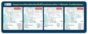ภาพจากดาวเทียมของ GISTDA เมื่อเดือนกันยายนที่ผ่านมา ได้นำเสนอข้อมูลเปรียบเทียบ “พื้นที่น้ำท่วมขังทั่วประเทศ” ย้อนหลัง 4 ปี แสดงให้เห็นความแตกต่างของฤดูกาลฝนและอิทธิพลของพายุ โดยมีตัวเลขรวมทั้งประเทศ ดังนี้